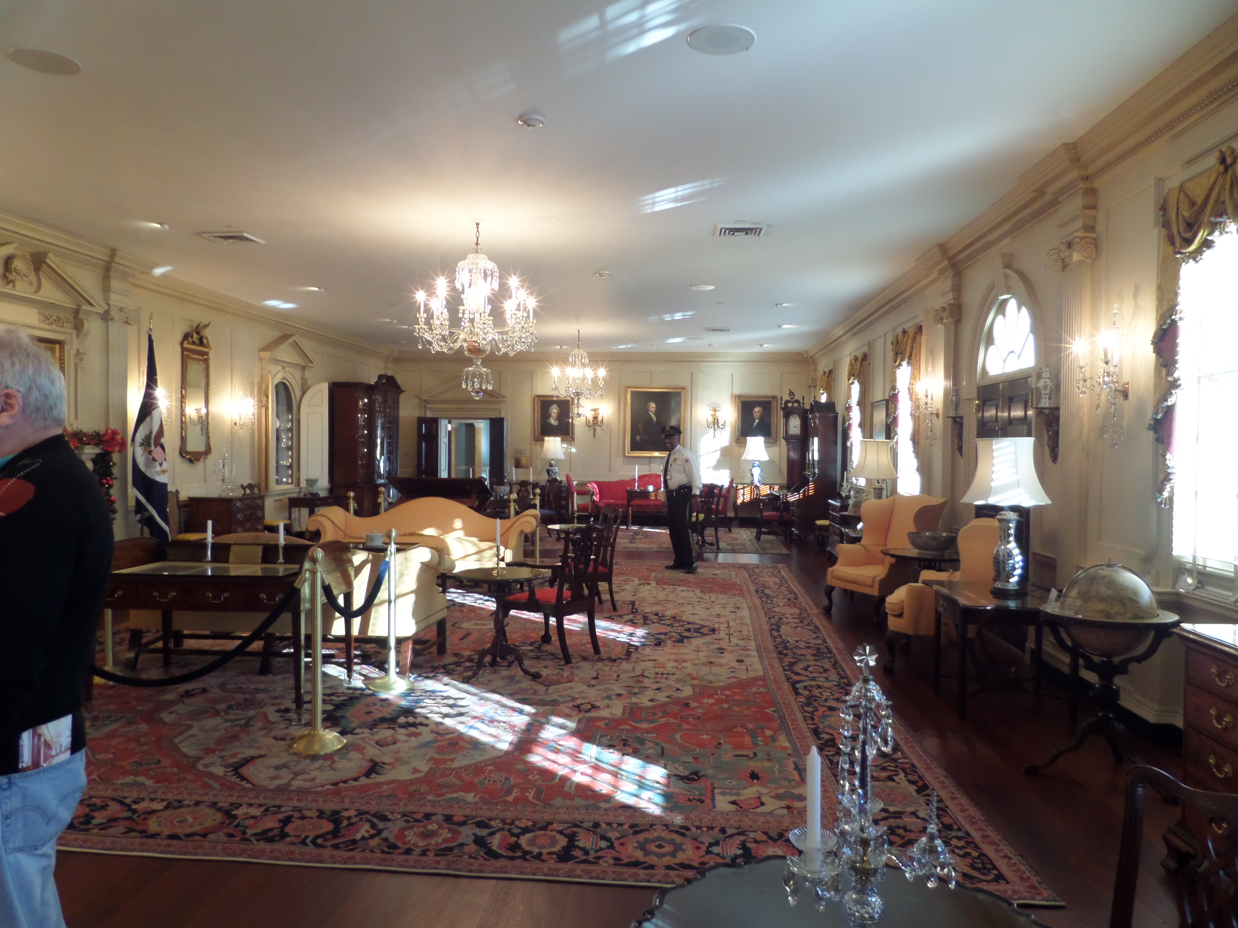 The rooms that were open to the public were attractive and there were some skilled paintings, nice Federal-period furniture, and lovely finishings and decorative arts. The overall feeling was—dare I say—humble? My feelings were torn about the interior. On one hand, the lack of ostentiousness befits a republic. On the other, I want my country to put its best foot forward to visitors. Who knows? Had I been able to tour the West Wing, or had not waited in the January cold (I’m not a morning person either), I might have felt that the tour was grand. I did like that I could go through at my own pace. I’m not in a hurry to go back though—unless I’m sitting behind a desk in the Oval Office and “Hail to the Chief” plays when I walk in a room. Nonetheless, even though the White House didn’t blow me over, as a historian, it still held great appeal and I appreciate having visited it.