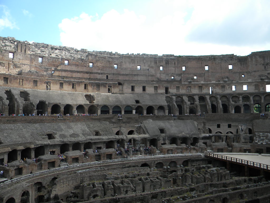 As I wandered around the amphitheater…a little lost (not many placards)…I envied those people with personal guides and contemplated how the Colosseum was still stratified to a degree. Those with private tours were able to visit areas restricted to the rest of us. They received in depth information about the place’s history. Just like the Romans who had occupied the arena in the early 1st century AD, we were also marked by our style of dress. Clothing indicated our economic class and, perhaps, our nationality.