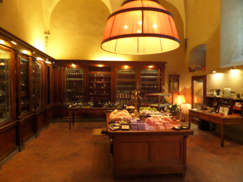 Walking down the hallway’s marble floor towards the inner sanctum my pulse quickened. I entered the bright sanctuary with its high vaulted ceiling. Heavenly scents filled the spacious room and alluring beauty products graced elegant cases. As delightful as this room was another beckoned to me—a room filled with history and enchantment. The gilded ceiling indicated that the room was indeed special. Antiquated cases held ointments, elixirs, and old manuscripts. I had been dreaming of this place for years. A woman with a beatific smile greeted me, “Buongiorno.” I had made it. I was at one of the world’s oldest apothecaries—Santa Maria Novella…and it was sublime.